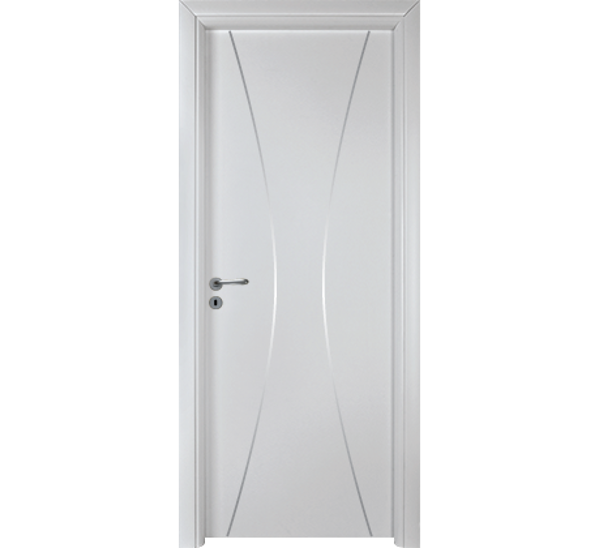 Porta in laminato costruita con un’anta tamburata dello spessore di 4,4 cm con cartelle in fibra di HDF nobilitato, completa di contropiastra e di serratura a scelta tra tipo patent, magnetica ottonata o cromosatinata.