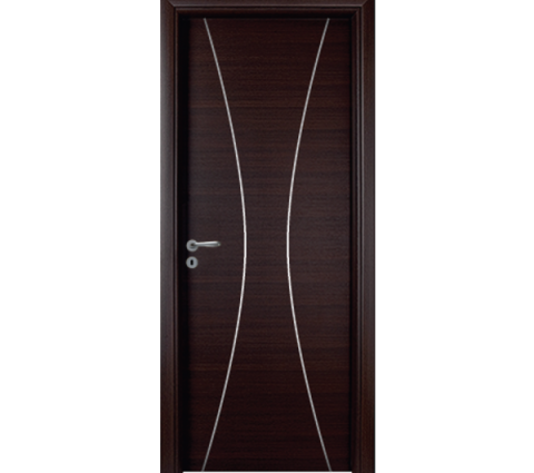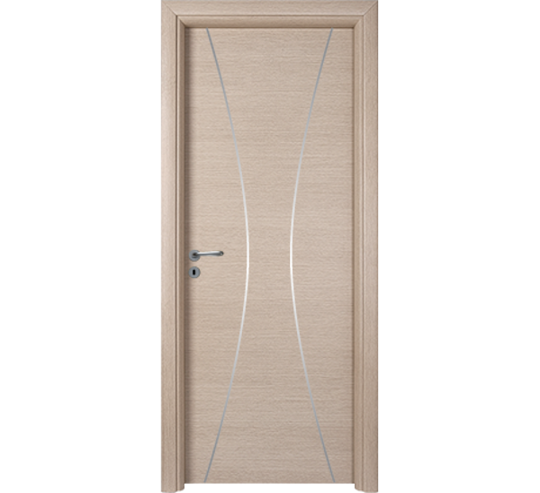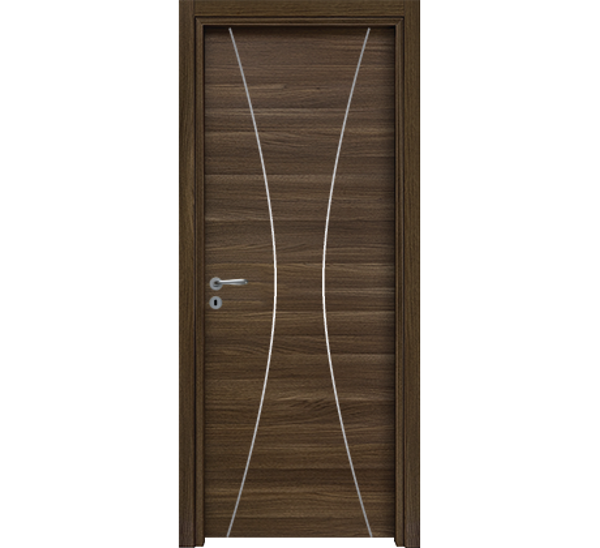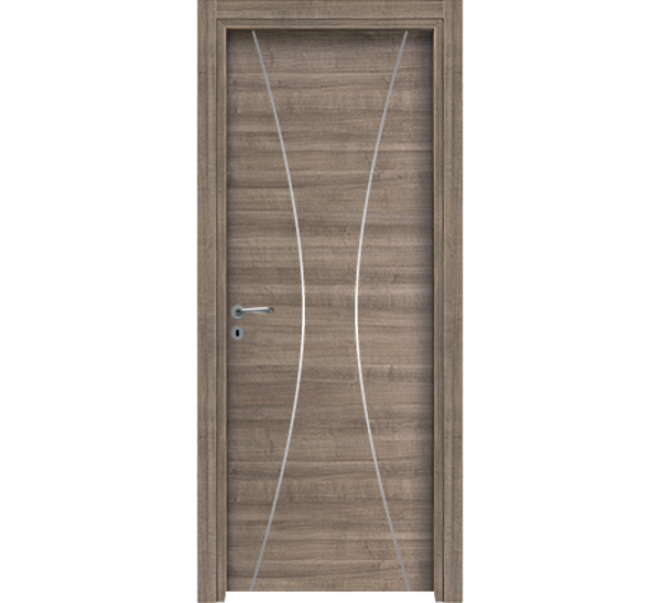 Porta moderna in cui l’incontro tra la robustezza del legno e l’elasticità di inserti in alluminio, dalle linee morbide che, incrociando la nobilità delle venature lignee, si sfiorano senza mai toccarsi, genera l’eleganza e il fascino dell’armonia perfetta per i Tuoi ambienti.